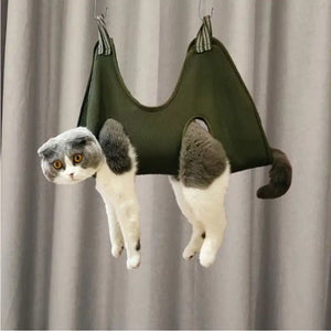 Design and Purpose: The grooming hammock or restraint bag is typically made of durable and breathable materials, often featuring mesh windows for ventilation. It's designed to comfortably hold the cat or small dog in place while allowing access to specific areas for grooming tasks.